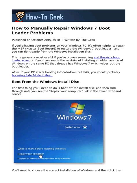 At present you are looking with regard to an Manually Repair Windows 7 Bootloader example that will we provide here inside some type of document formats such as PDF, Doc, Power Point, as well as images that will will make it easier for you to create an Manually Repair Windows 7 Bootloader yourself. For a clearer look, you can open a few examples below. All the good examples about Manually Repair Windows 7 Bootloader with this site, we get from a number of sources so you could create a better record of your own.If the search you acquire here does not match up what you are searching for, please utilize the research feature that we have got provided here. You will be free to download anything that we provide in this article, it will not cost you typically the slightest.